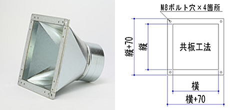 角丸ダクトは、角ダクトと丸ダクトを接続するためのジョイント用ダクトです。